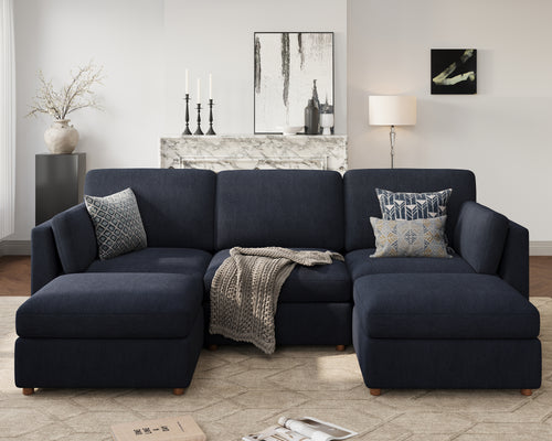 118'' Oversized Modular Sectional Sofa with Ottoman, Blue U-Shaped 5-Seat Luxury Corner Sectional Couches for Living Room, Solid Wood Frame Sofa, Removable Washable Cover, Deep Seat Couch