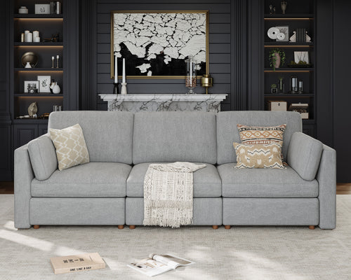 118'' Oversized Modular Sectional Sofa with Ottoman, Gray 3-Seat Luxury Corner Sectional Couches for Living Room, Solid Wood Frame Sofa, Removable Washable Cover, Deep Seat Couch