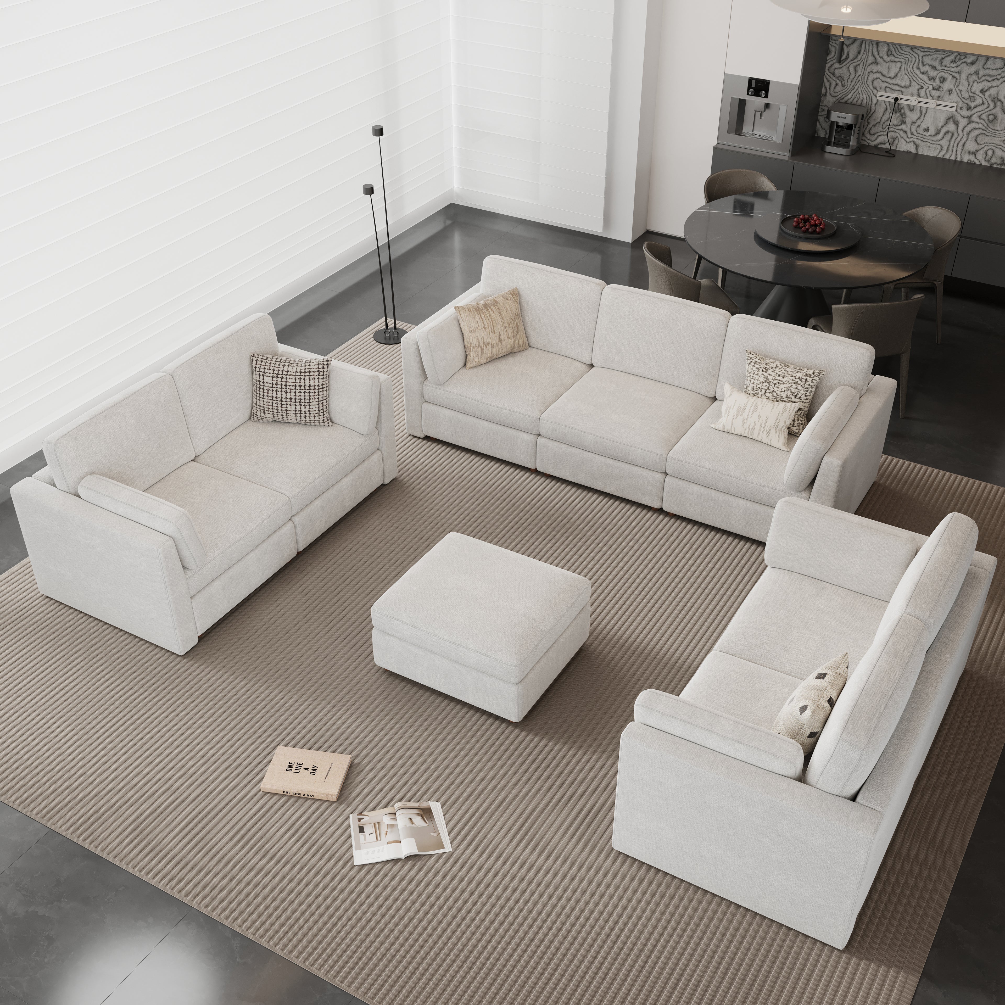153'' Oversized Modular Sectional Sofa with Ottoman, White 6-Seat U-Shaped Luxury Corner Sectional Couches for Living Room, Solid Wood Frame Sofa, Removable Washable Cover, Deep Seat Couch